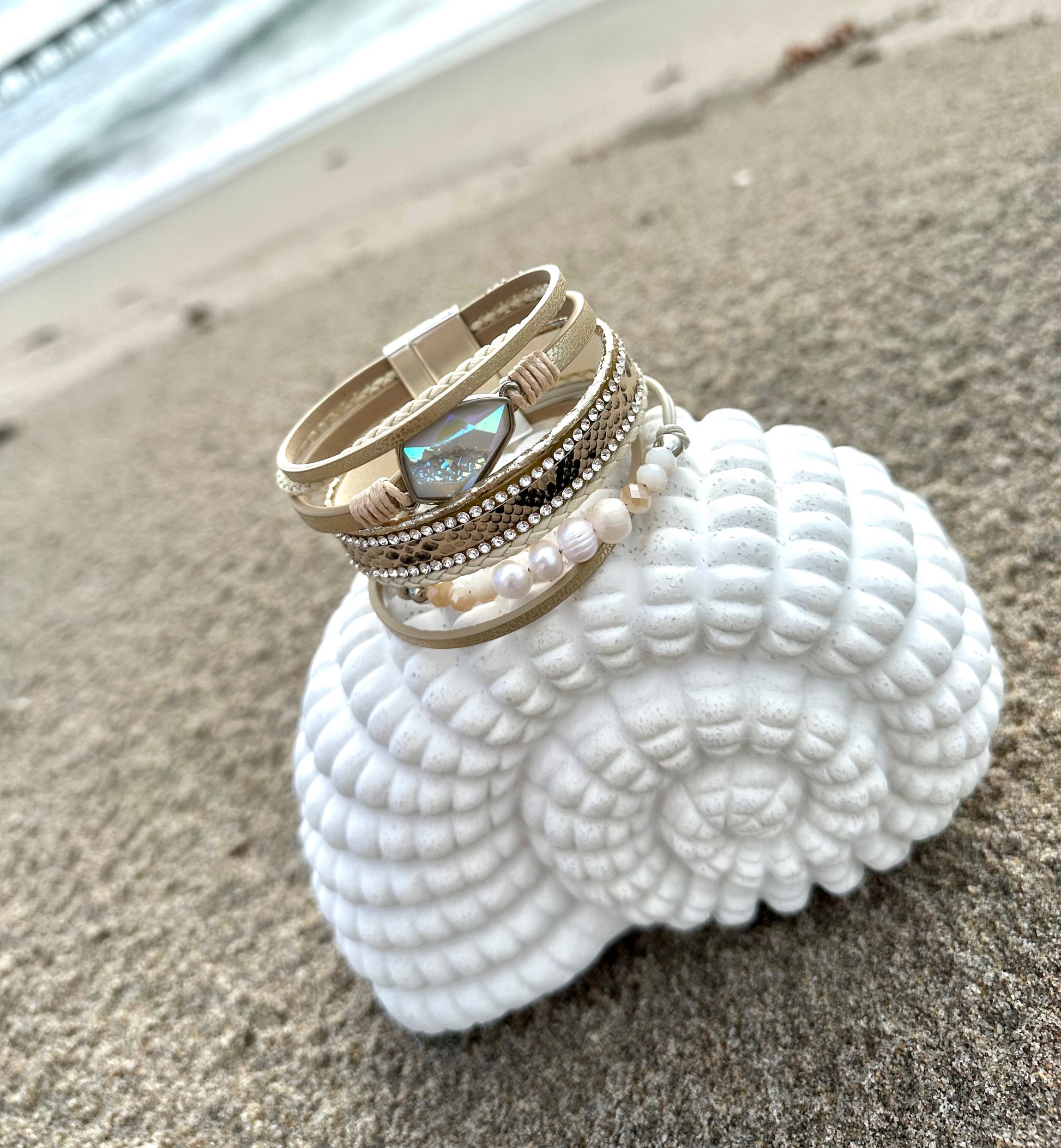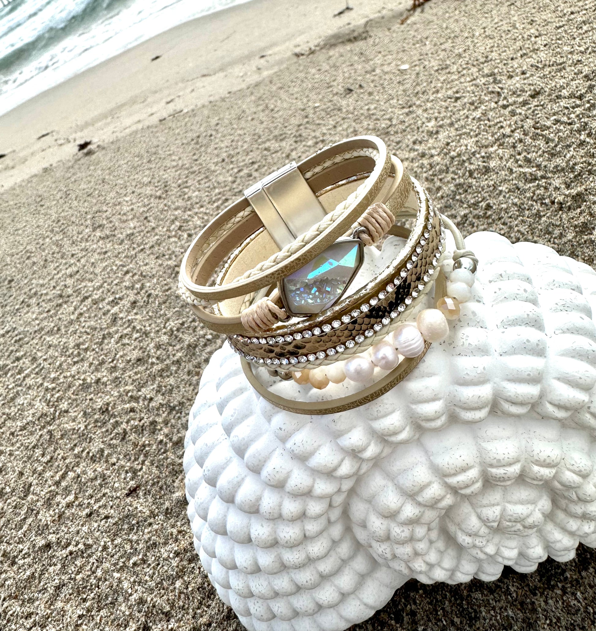 Crystal Pendant Multi Layered Bracelet