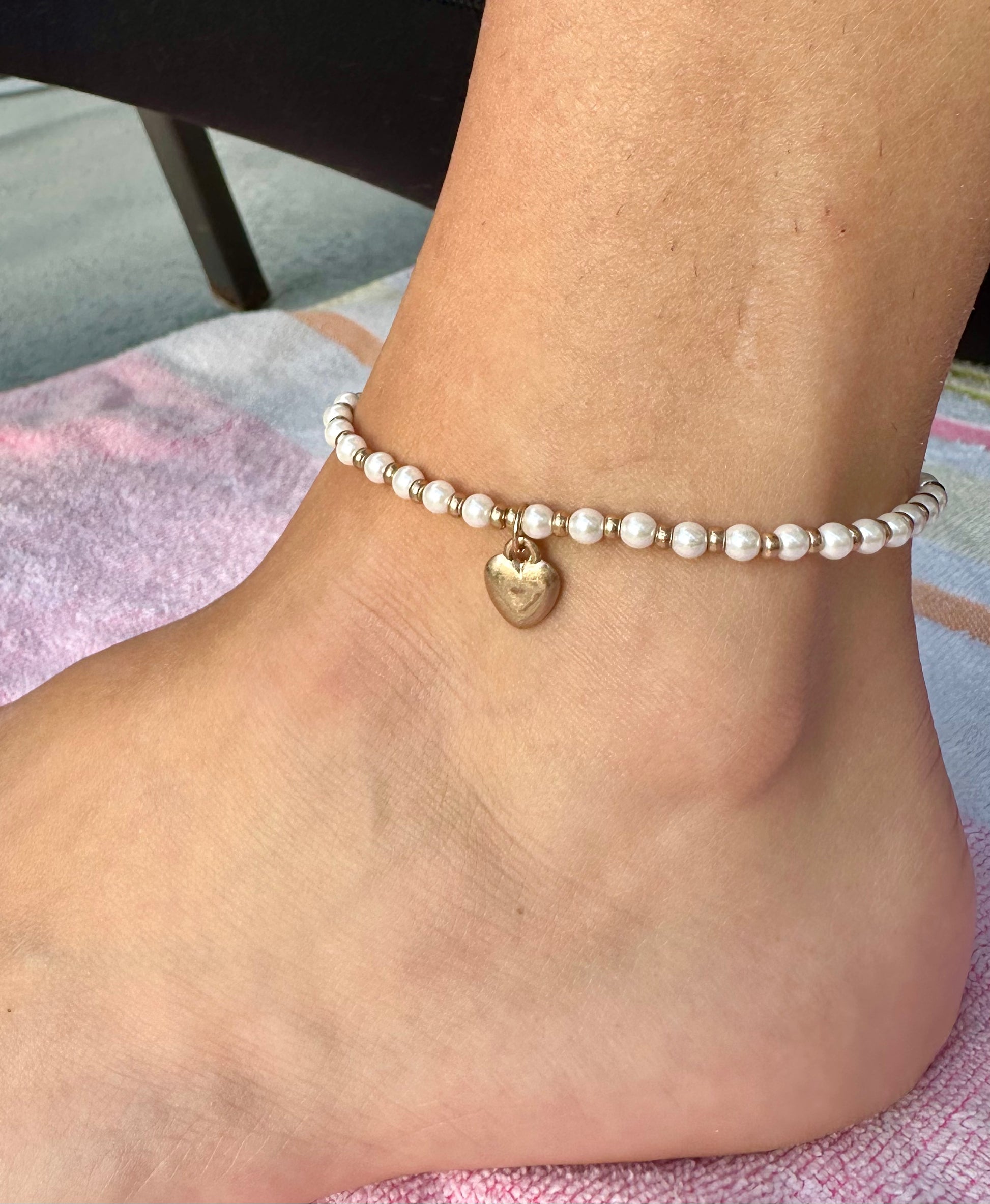 Stretch Stone Beads Anklet With Heart