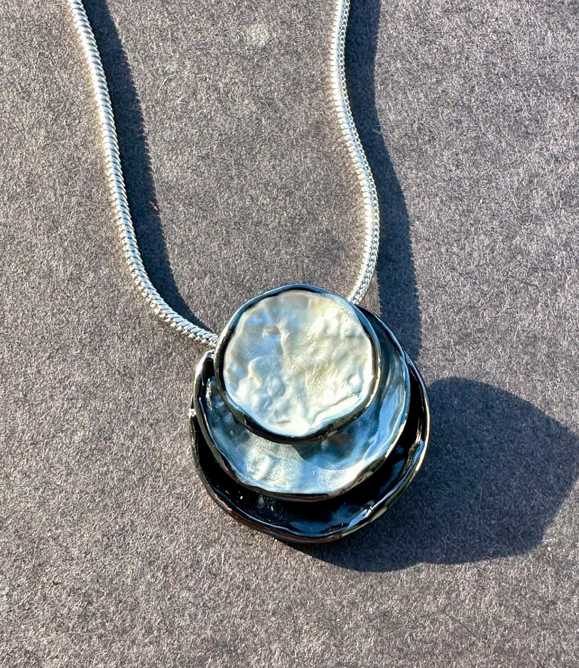 Three Stacked Potato Chip White/Grey/Black Pearl Necklace
